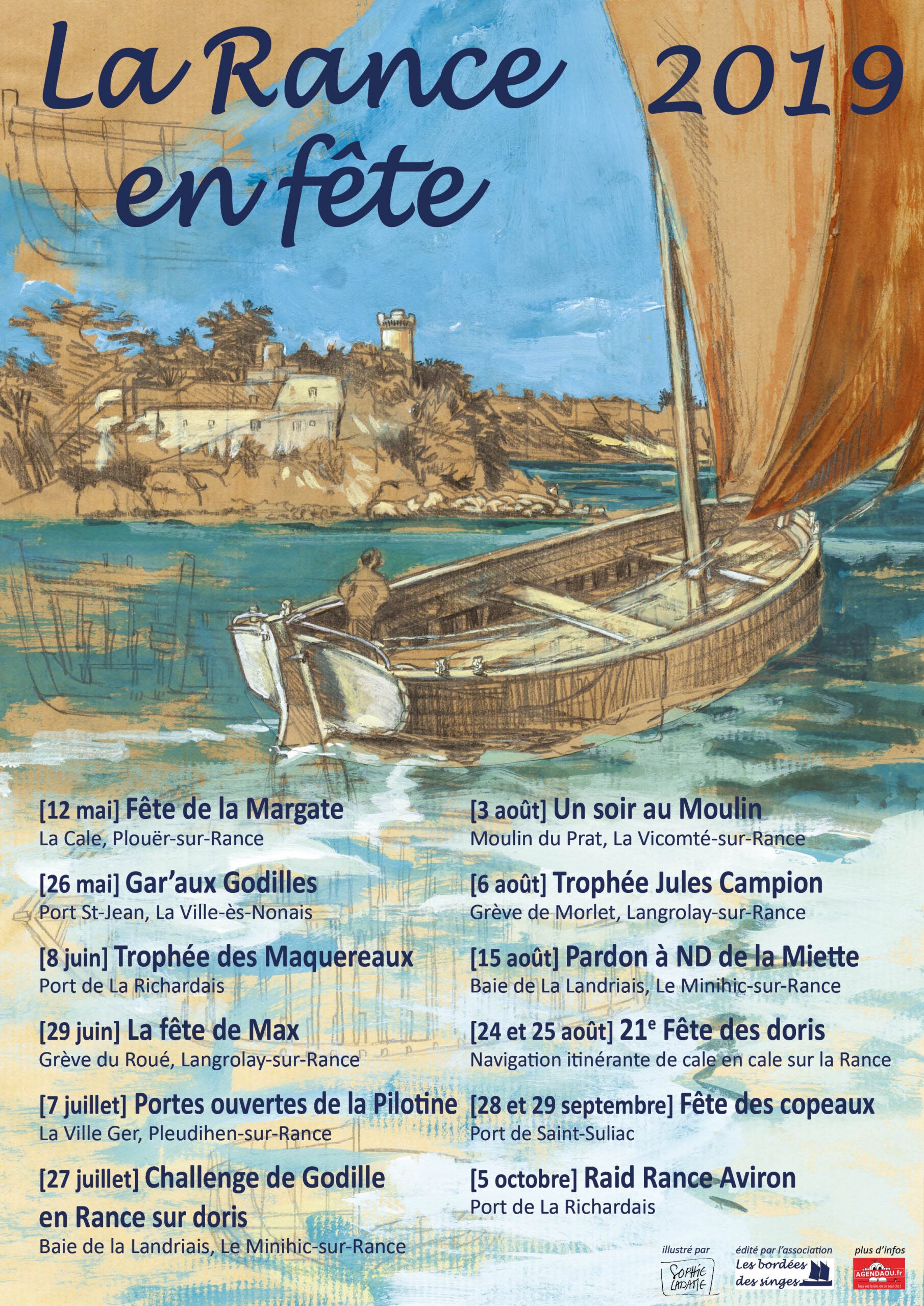 Pour 2019, 2020 (non diffusée) et 2023, c’est Sophie Ladame, illustratrice à St Servan et marin (atelier galerie « à la marge »), qui a réalisé l’illustration de la Gabare de Rance.