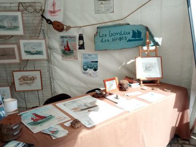 Ainsi, Isabelle Jambon (atelier Vague à l’Art à St Suliac ; navigante) a réalisé une aquarelle d’un chaland de Rance, qui a servi de fond pour la Rance en fête 2017 et 2018.