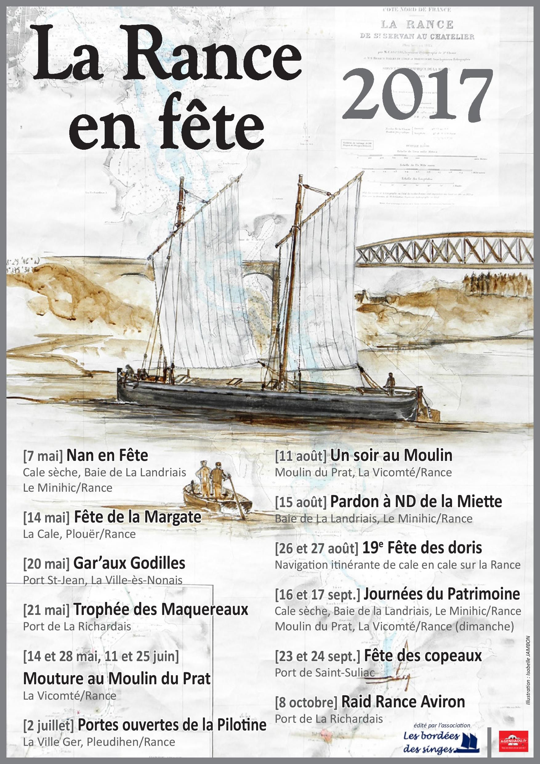 Depuis 2016, l’association édite La Rance en Fête, véritable petit programme des manifestations locales. Le fond des affiches et flyers est illustré par des artistes locales ayant un lien avec ces patrimoines, les sujets représentés sont des bateaux disparus de l’estuaire.